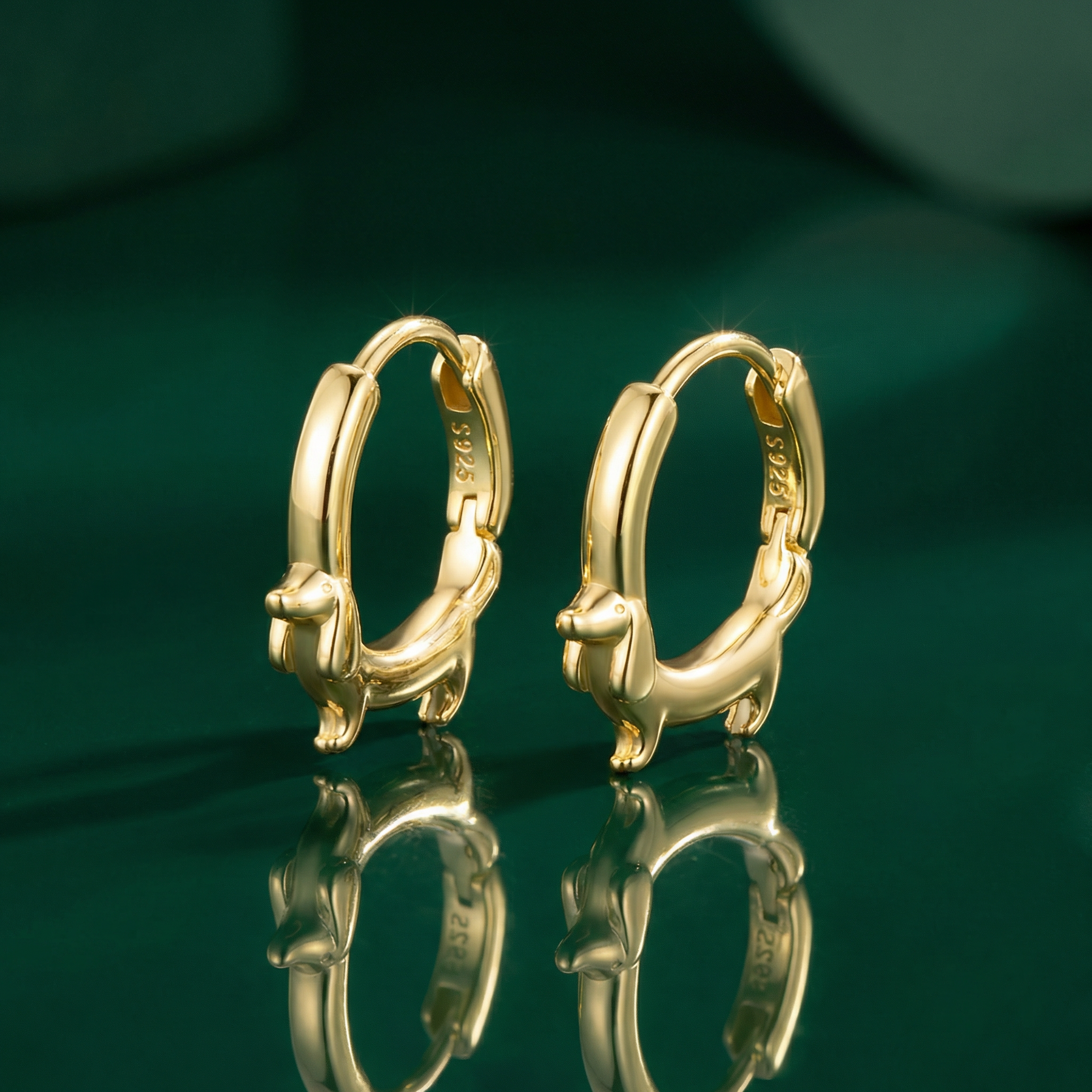 Celebrate your love for your four-legged friend with these charming dachshund hoop earrings. Crafted in premium 925 sterling silver and available in a luxurious gold-plated finish, these playful hoops capture the endearing spirit of everyone's favorite sausage dog. The tarnish-resistant finish ensures your precious pups keep their shine, making these earrings perfect for everyday wear and cherished conversations.