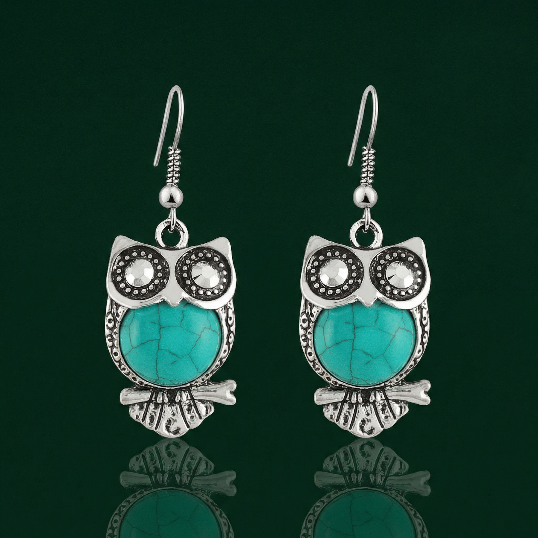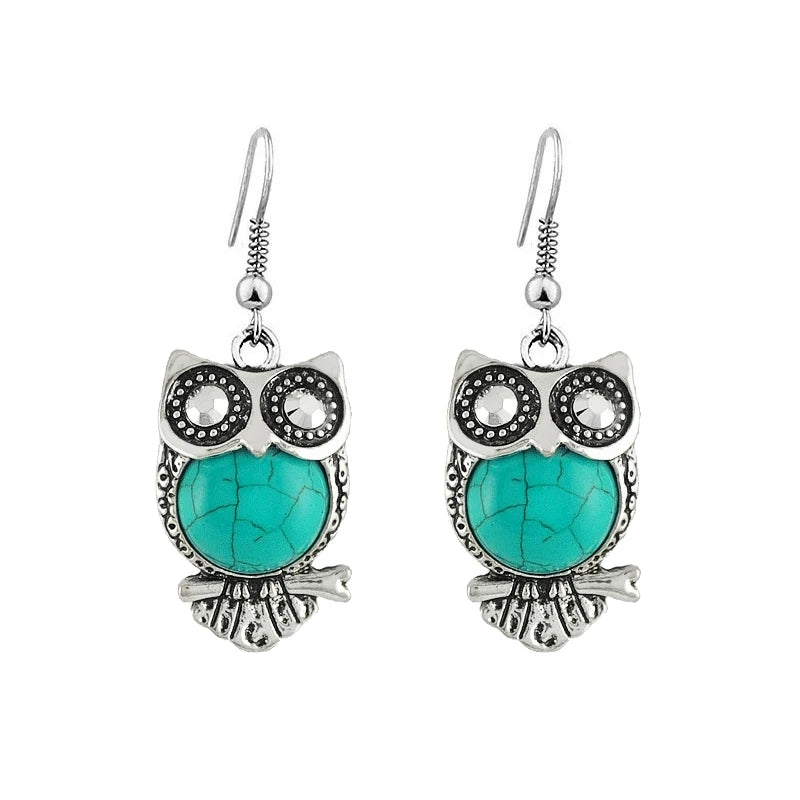 Embrace your inner wisdom with these stunning owl-shaped earrings that perfectly blend bohemian flair with timeless elegance. These eye-catching accessories feature a vibrant faux-turquoise stone that serves as the owl's body, creating a bold pop of color for any outfit. Whether you are dressing up for a night out or adding a touch of whimsy to your daily look, these earrings are the ultimate conversation starter.