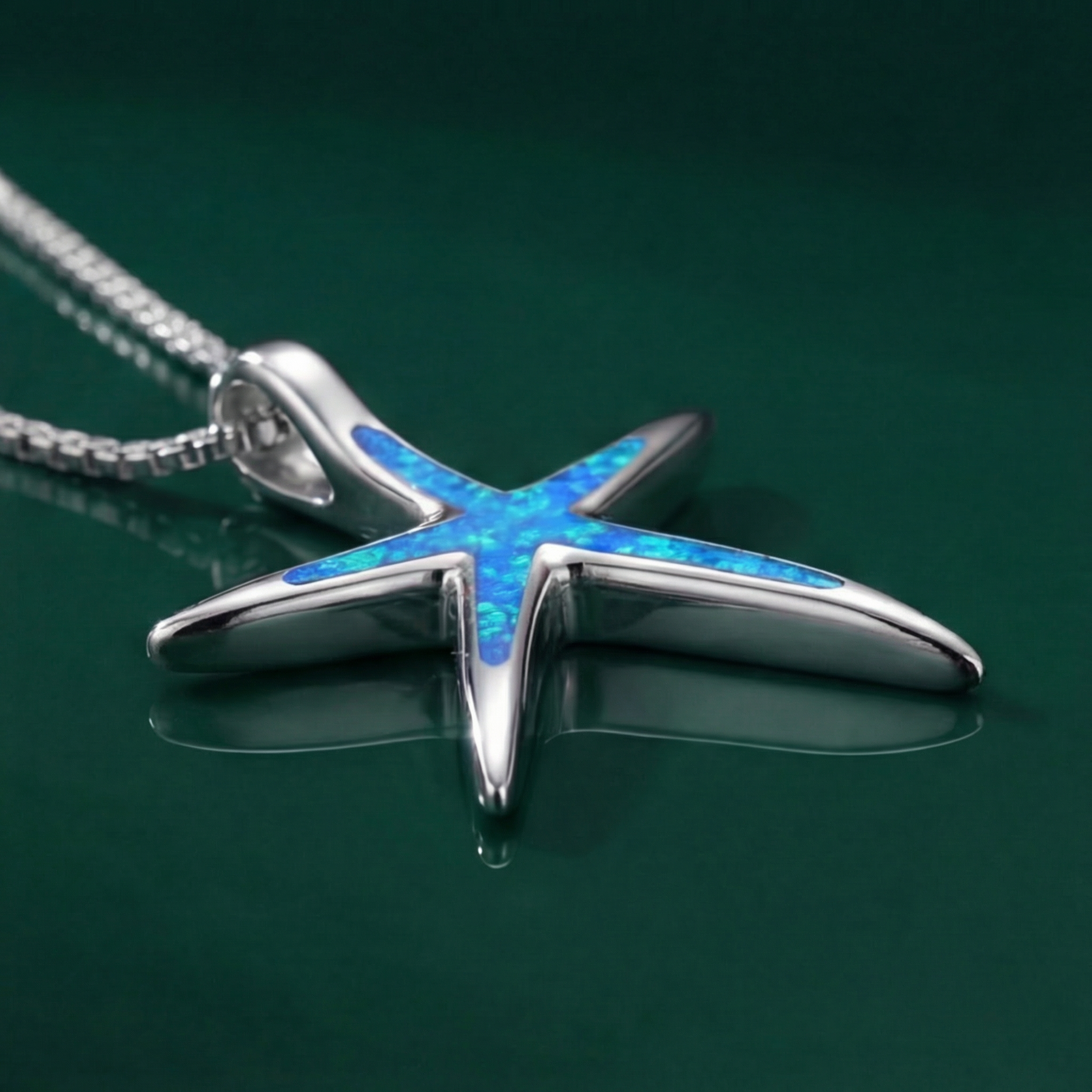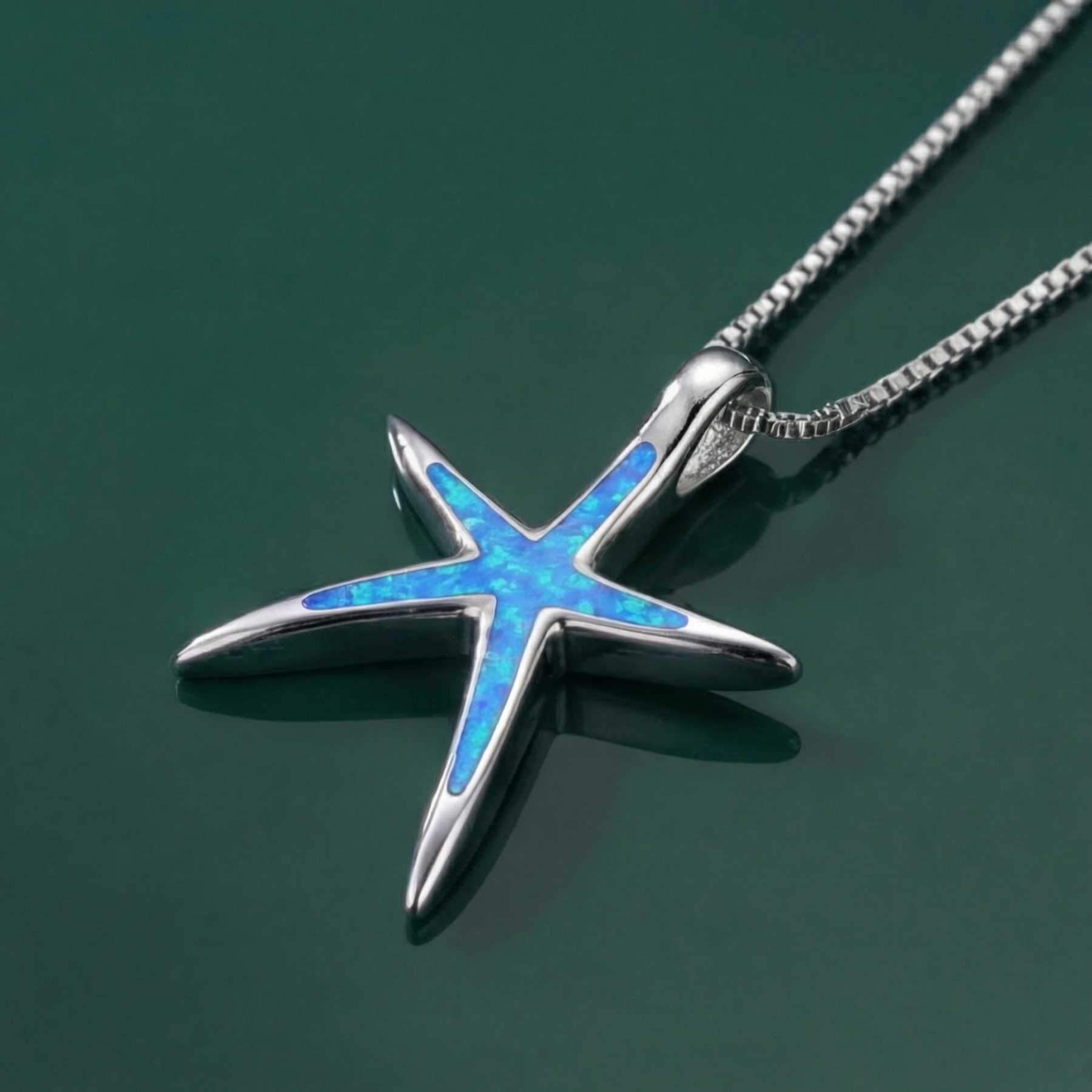 Blue Opal and Silver Starfish Necklace