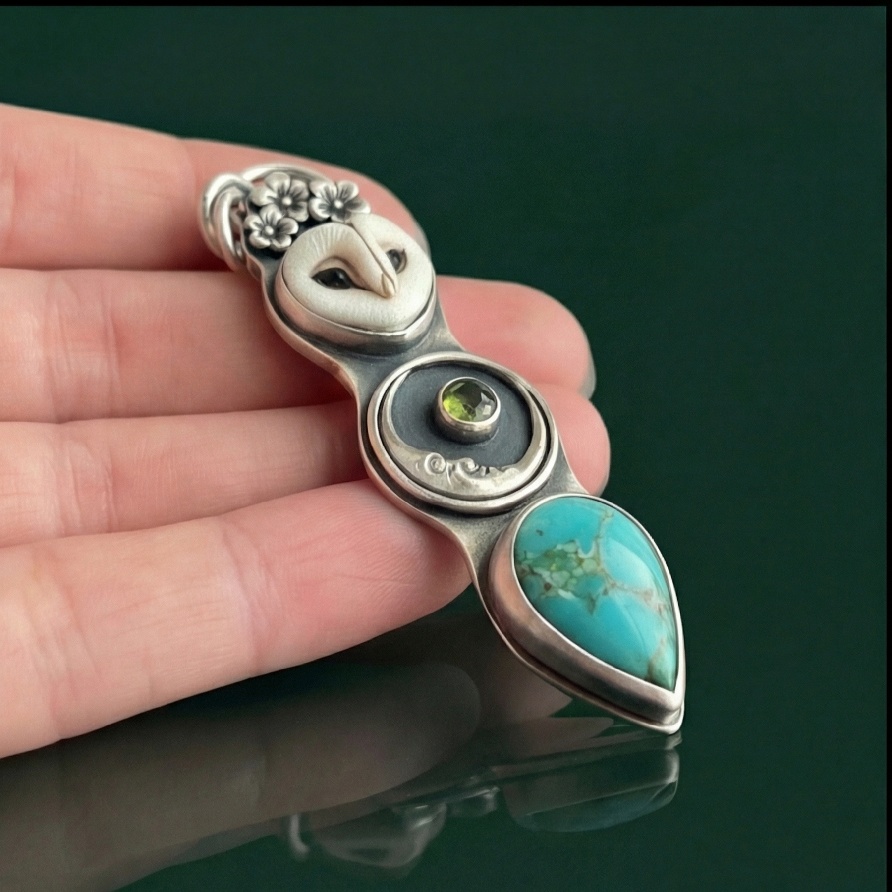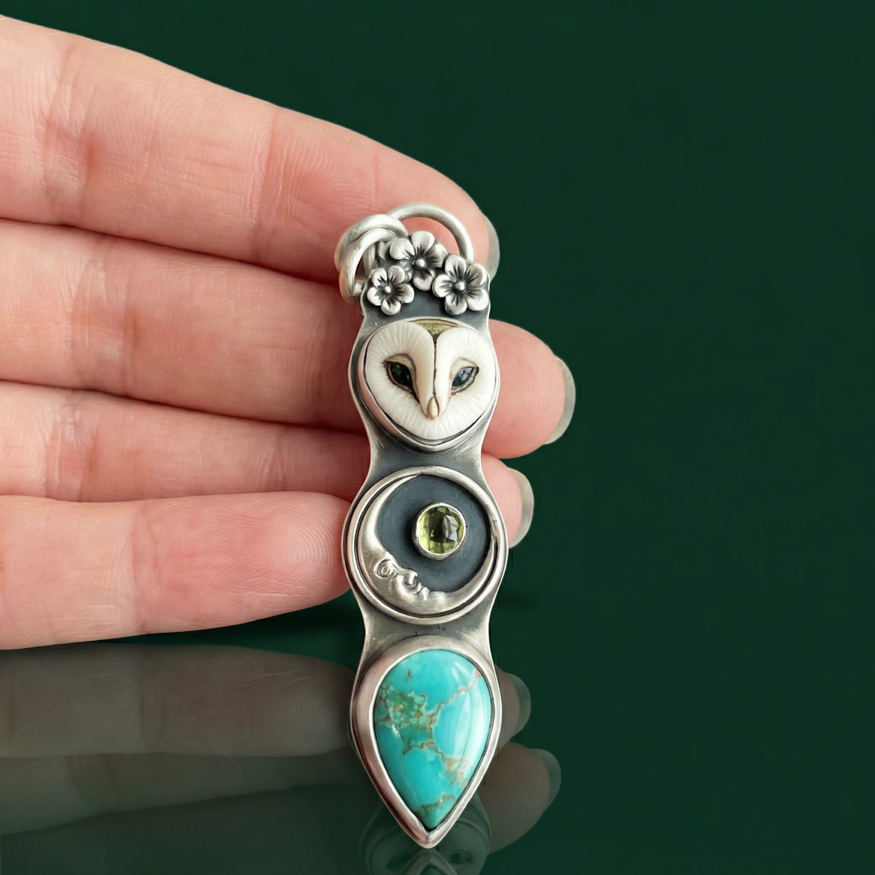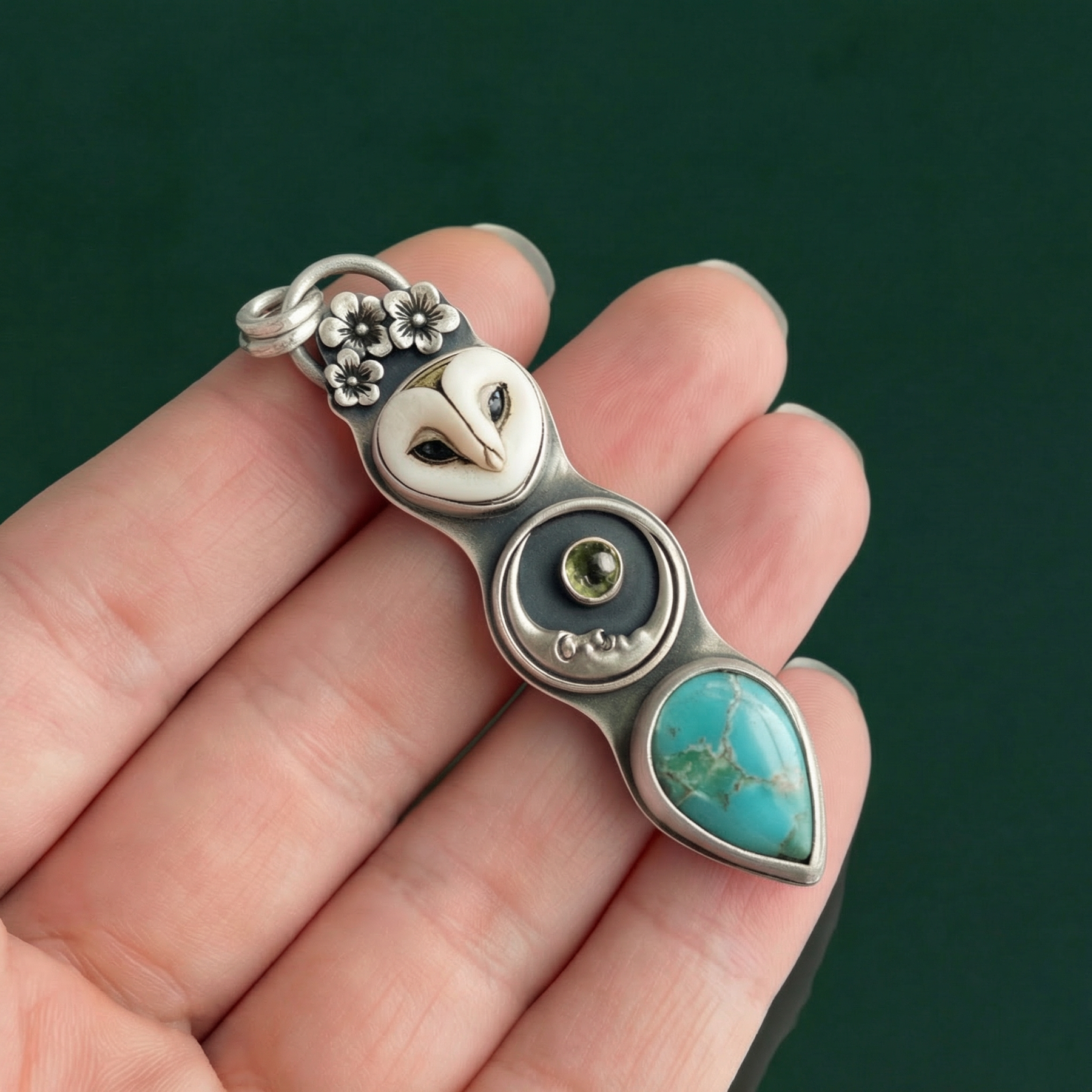 There is something truly magical about how turquoise holds the sky's serenity and earth's grounding energy, captured perfectly in this bar necklace adorned with a wise owl guardian. More than just jewelry, this piece carries the spirit of the Southwest, reminding you to trust your inner voice and guiding you through life's mysteries with ancient knowing.