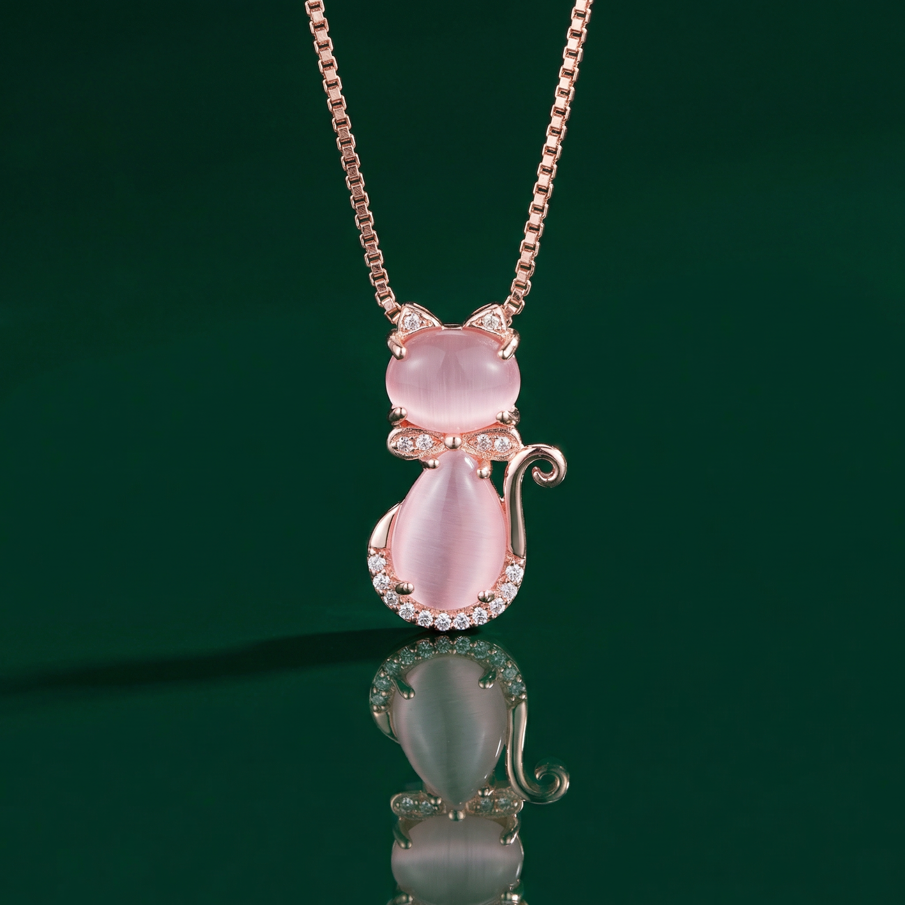 This charming necklace features a delicate pink stone shaped like a lovely cat, accented with sparkling zircon for a touch of elegance. Perfect for cat lovers, it adds a playful yet sophisticated detail to any outfit, making it an ideal gift or a special treat for yourself. Its subtle shimmer and unique design ensure you stand out with grace and style.