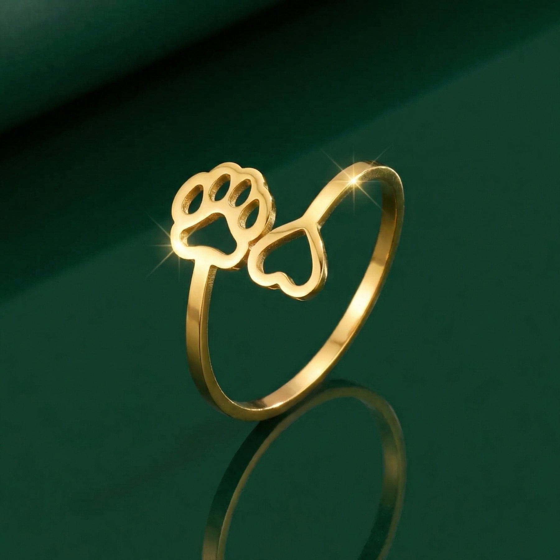 This elegant, adjustable ring is the perfect way to celebrate the bond between you and your pet. Crafted with a delicate gold finish, it combines a sweet paw print and a heart to create a timeless tribute that fits any finger comfortably. Whether you are a proud dog mom or a cat lover, this piece adds a touch of warmth to your everyday style.