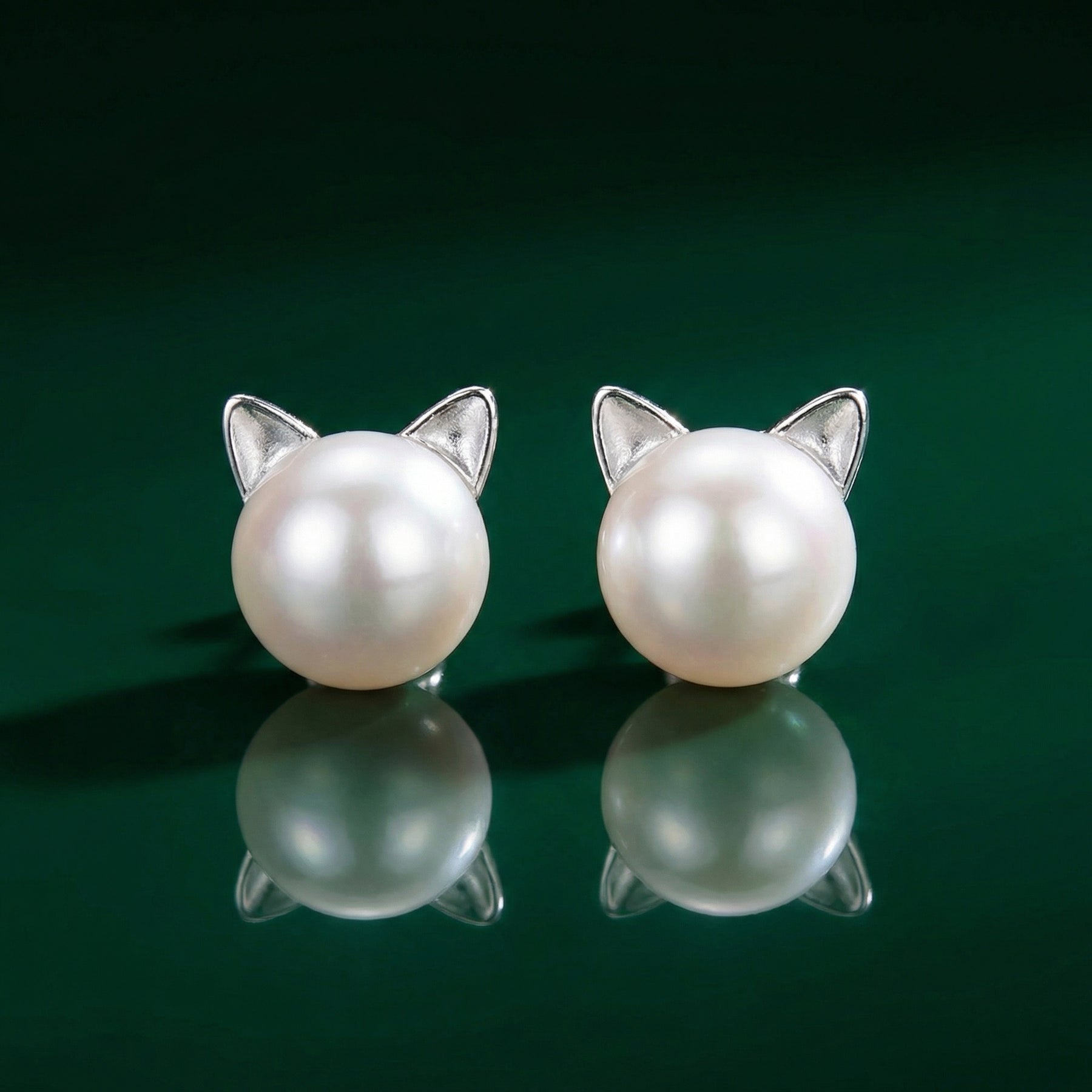 🐱 The Sterling Silver Cat Pearl Stud Earrings