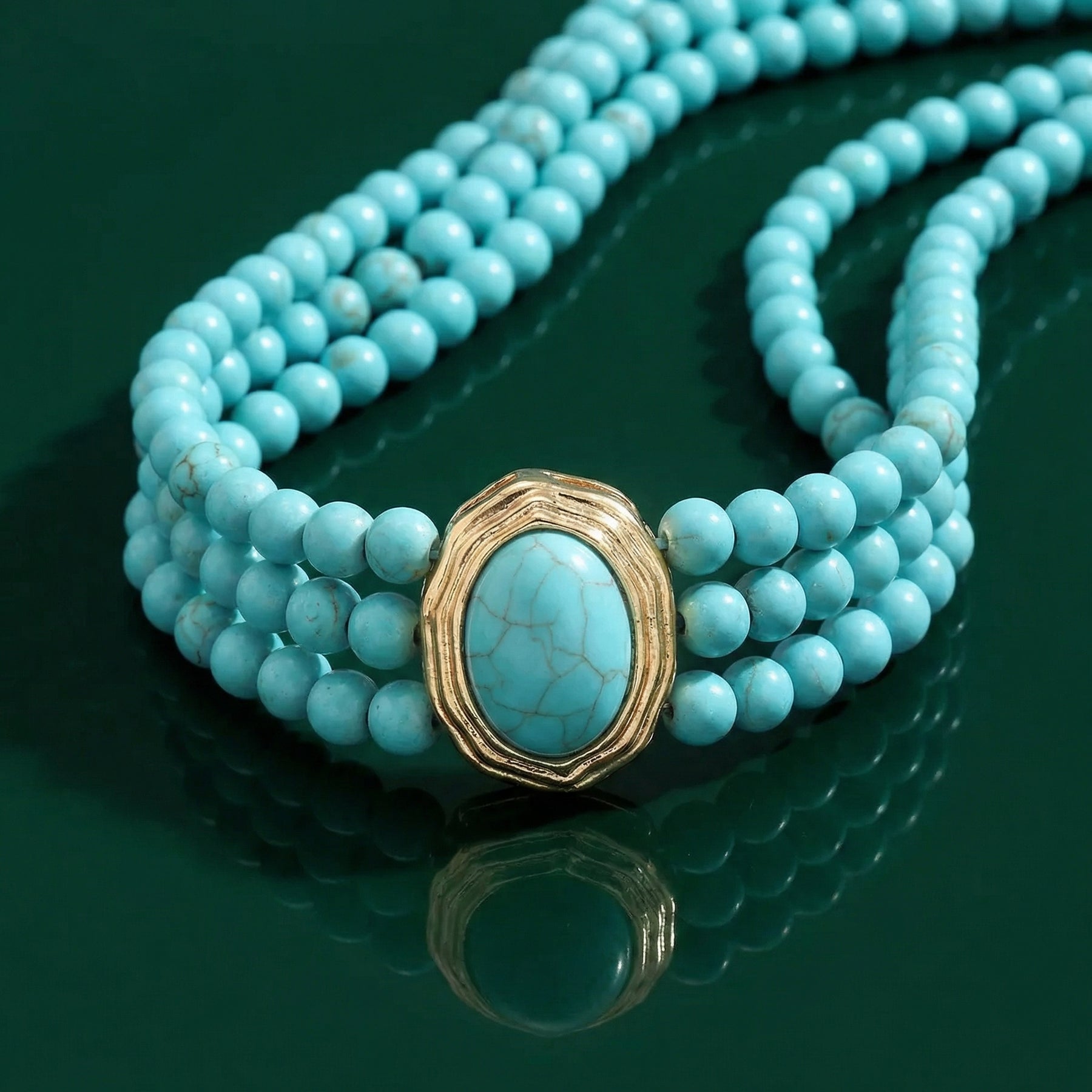 Turquoise Triple-Strand Choker Necklace